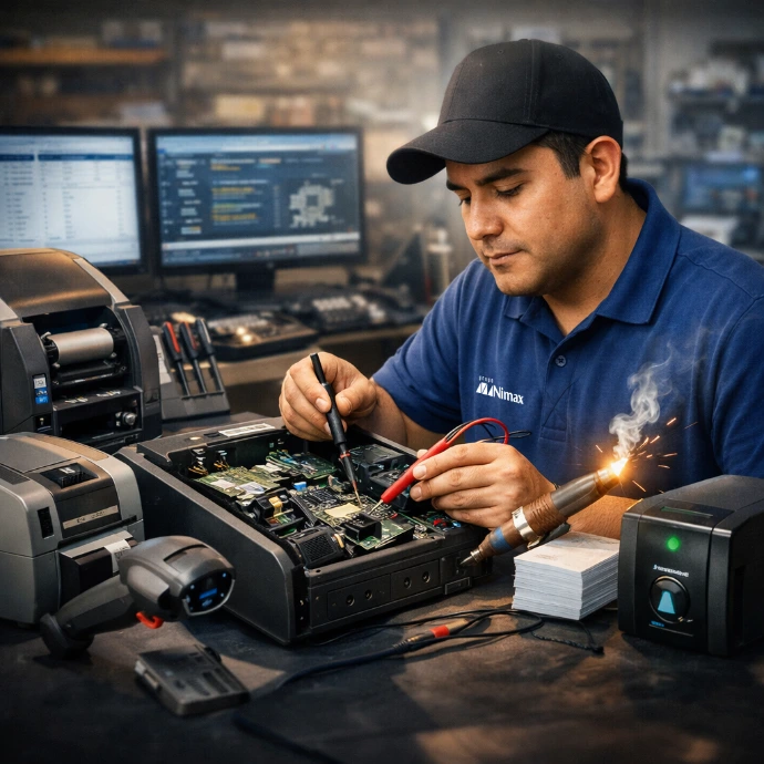 Mantenimiento Correctivo en HW. Somos Centros Autorizados de la mayoría de las marcas que comercializamos, reparamos Terminales de cómputo móvil, lectores ópticos Hand Held y Fijos, Impresoras de Credenciales, Código de Barras y de Recibos para POS.